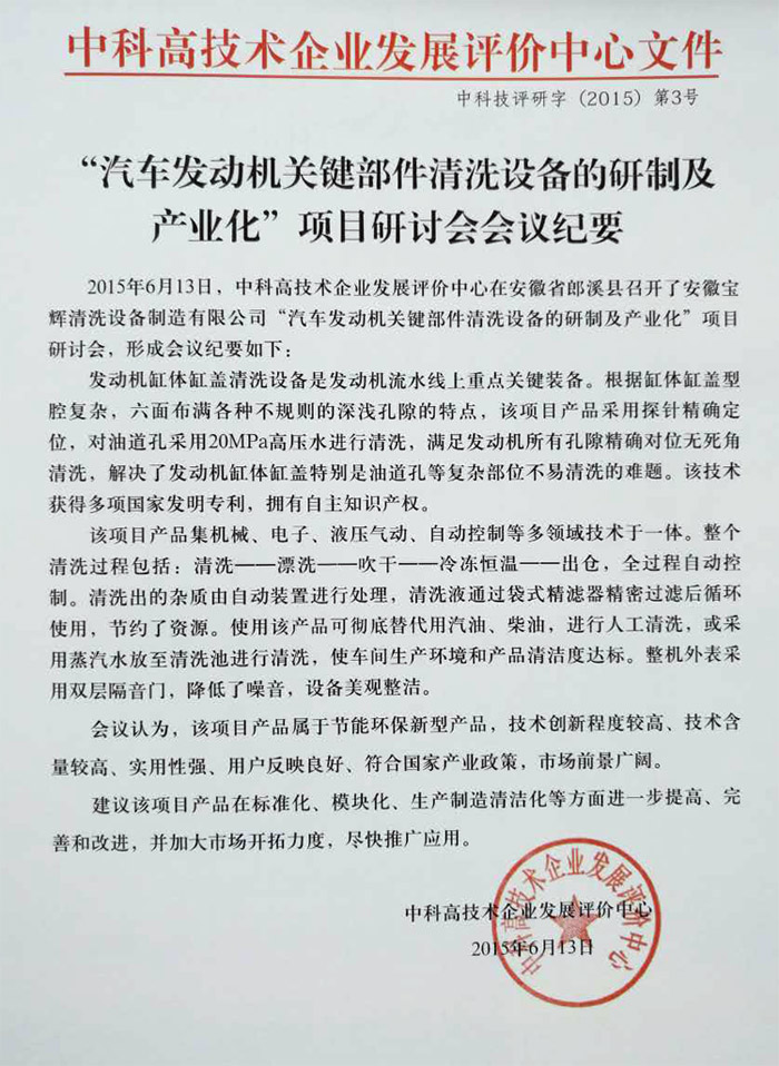 關(guān)鍵詞:“汽車發(fā)動機關(guān)鍵部件清洗社保的研制及產(chǎn)業(yè)化”  發(fā)布日期:2015-06-13  來源:安徽寶輝清洗設(shè)備制造有限公司