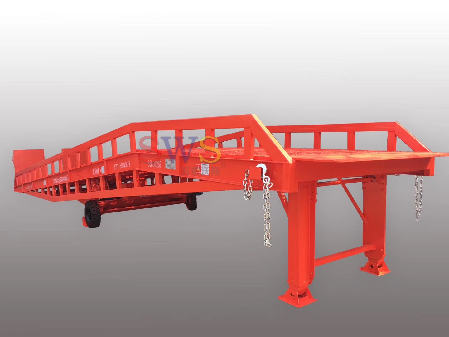 可調(diào)節(jié)長度的索鏈用于鉤住車輛,使登車橋與車輛即使發(fā)生移位時(shí),始終緊密貼合。